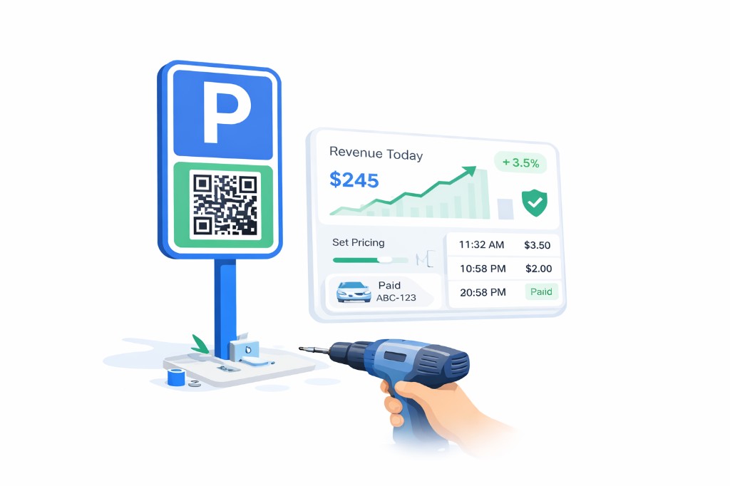 Drivers scan your QR sign and pay in 30 seconds. No app, no kiosk, no meter.